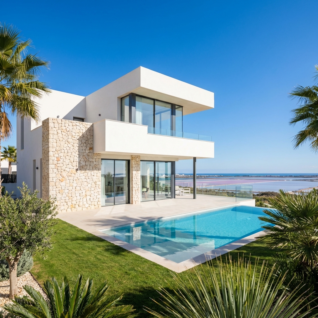 A stunning detached villa with panoramic salt lake views. This property offers the perfect blend of luxury and comfort, featuring a spacious open-plan living area, a modern gourmet kitchen, and a private landscaped garden with a saltwater pool.